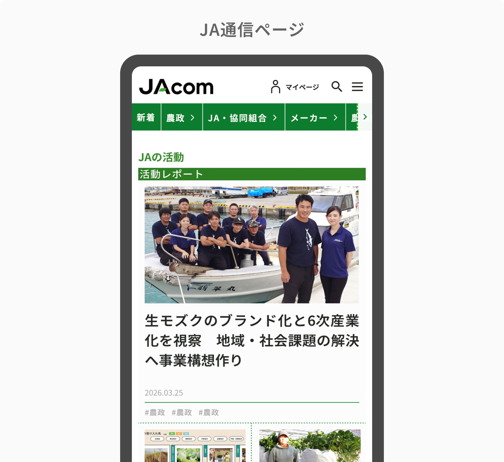 全国のJAの最新の活動を日々更新する「JA通信」を追加。あなたの地域のJAの取り組みや、知らなかった日本の農業の魅力にきっと出会えるはずです。