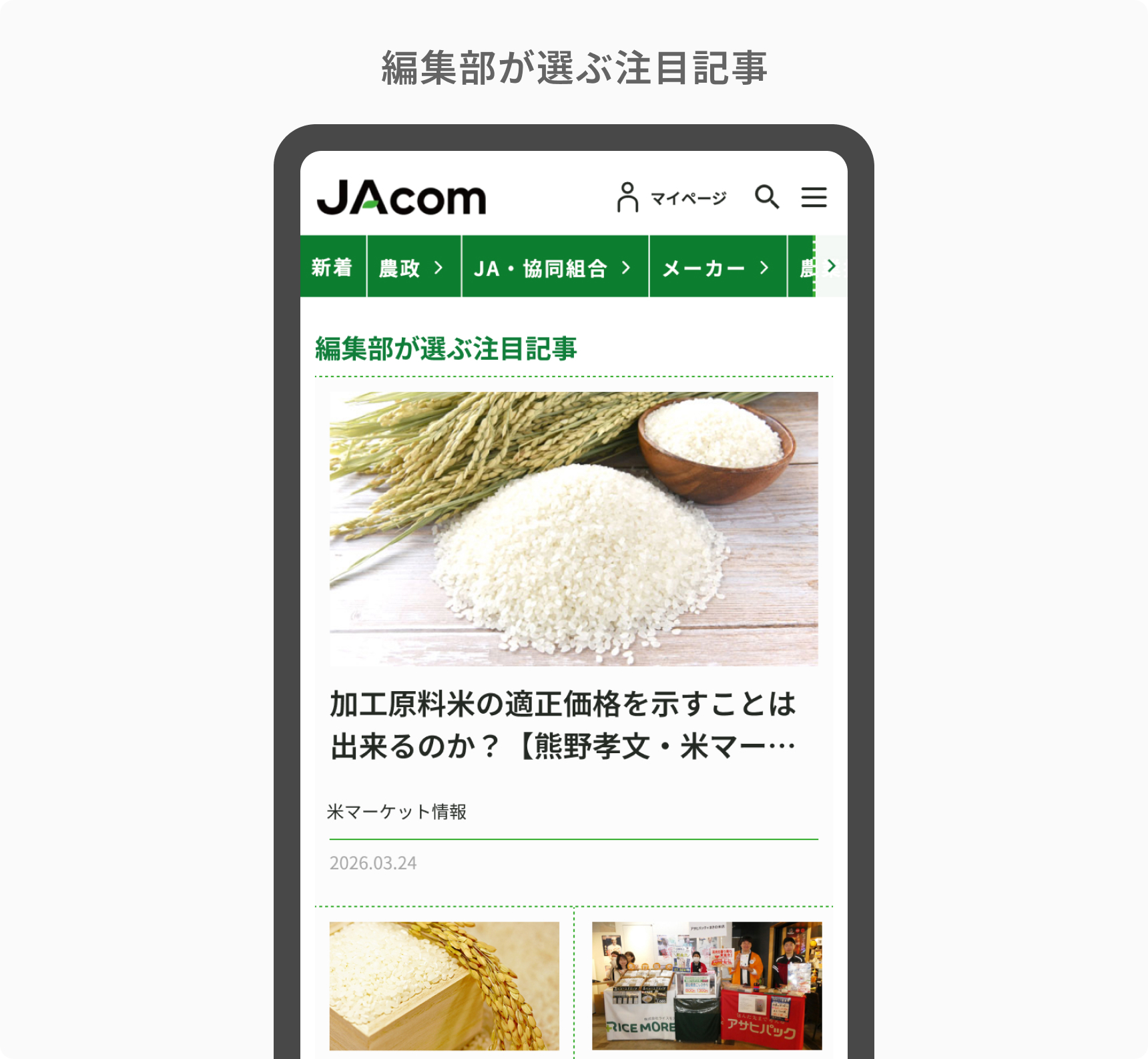 トップページには、編集部が「今、最も読んでいただきたい」と考える記事を厳選してピックアップするコーナーを新設しました 。定期的にチェックすることで、農業界の重要な動きや新しい視点に触れることができます。