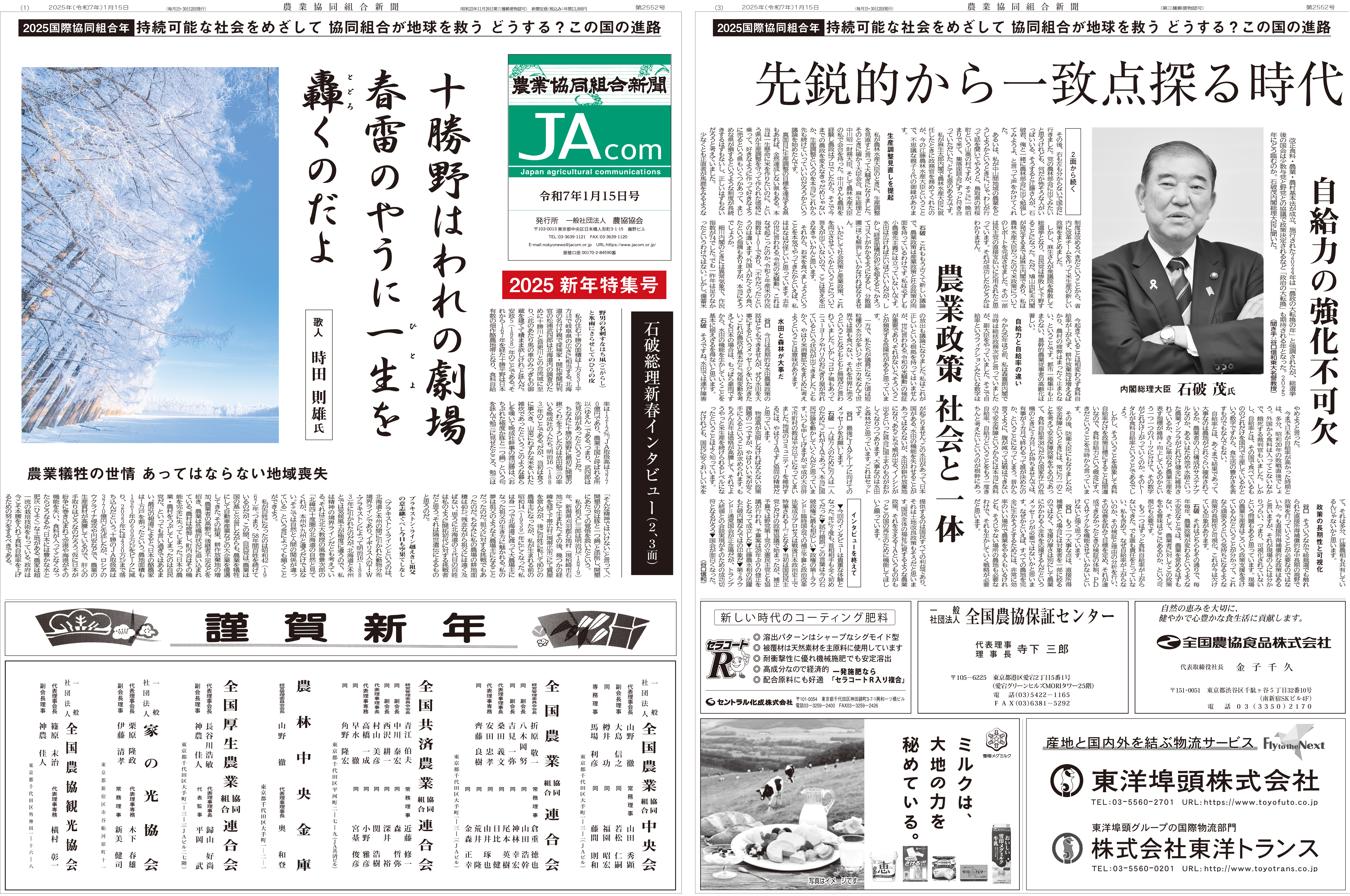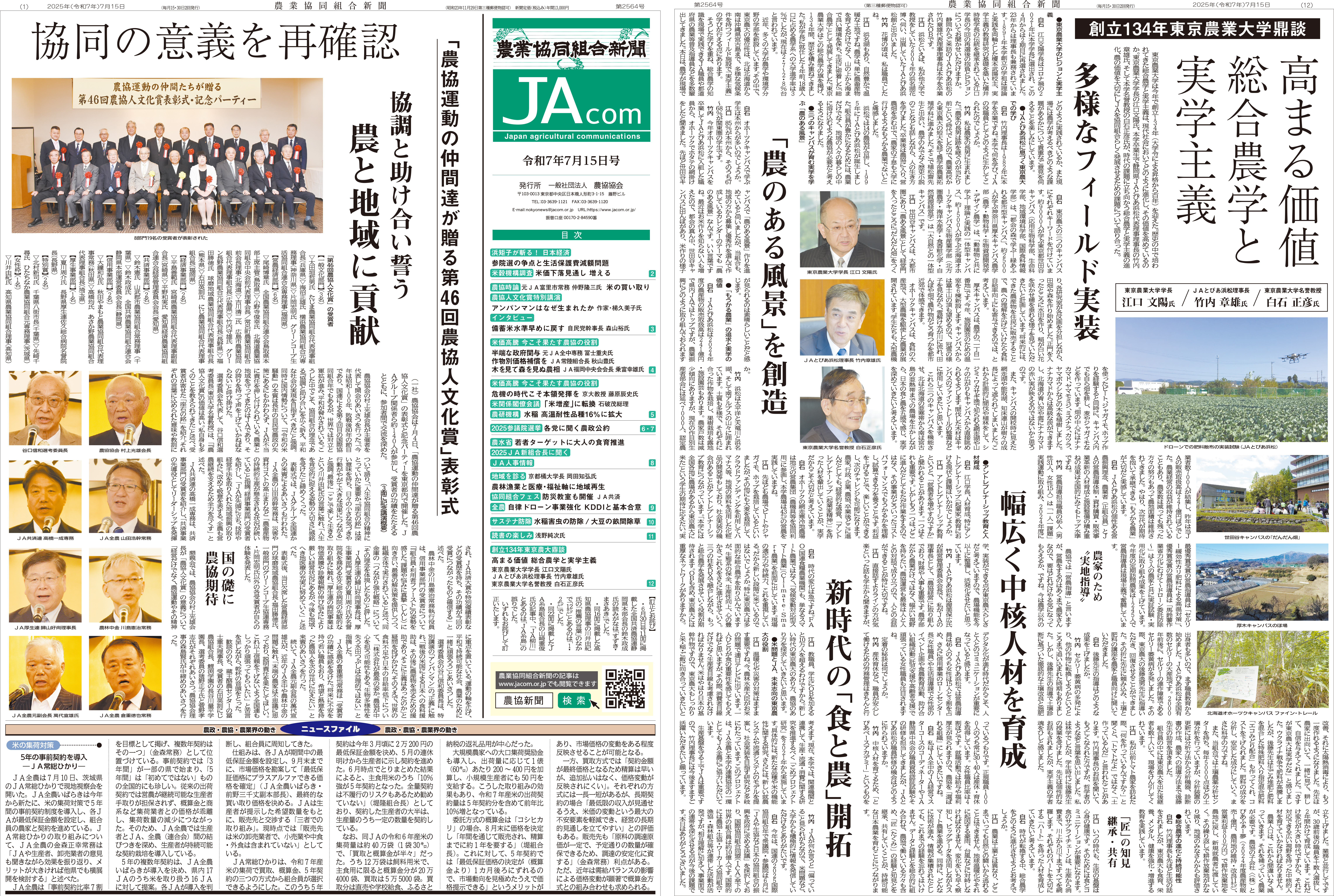 「農業協同組合新聞」は1948(昭和23)年に創刊され、全国のJAグループ役職員、生産者、生協などを対象にした月2回発行の新聞です。