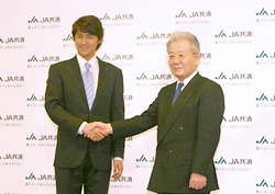 記者会見で前田理事長は「彼のパーソナリティーを大事にし、JA共済の親しみやすさ・信頼・安心といったブランドイメージの強化やJA共済のファン層拡大につなげていきたい」と期待を込めて語った。 賀集さんは「JA共済の顔、LAの顔として選ばれ嬉しかった」と感想を述べ、CMのなかで見せる「LAの変身ポーズ」を披露した。 なお、賀集さんは現在、TBS系連続ドラマ「ドールハウス」に刑事役として出演している。