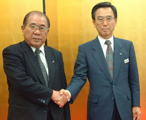 | 農林中金上野理事長と安田福島県信連会長(左) |