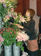「青山フラワーマーケット」は現在43店舗あり、今回のテーマである「ライフスタイルブーケ」は2000年から展開しているもので、各店舗がそれぞれ地域密着型の提案を行っているところに特色がある。絶えず「産地ブランドを大切にし、産地・生産者の顔が見えるを重視」(コミュニケーション開発室の深海麻衣さん)している。また、顧客に対する情報発信も的確に行われ、例えばメールマガジンの配信数は4500に上っている。