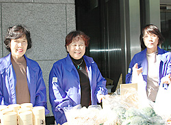 このように、JAいずもでは昔から女性組織の活躍が目立っており、現在正組合員約6300人のうち、4分の1は女性である。「現場では女性が元気で頑張っています。女性の声をJAの活動に反映させるよう、今後は女性役員の比率を高めて行かなければ…」と、ブロッコリーを道行く人に薦めていた女性部員は語った。