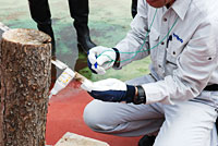 下:幅広い研究開発体制を構築(樹幹注入剤「アトラック」の実演から)