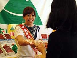山形の「食のサポーター」を務めている女子アマチュアレスリングの浜口京子選手も登場し「サポーターになったことを誇りに思っている。山形のおいしいものをいっぱい食べて、これからもマットの上で大暴れしたい」とコメント。名物の「気合い」の10連発も披露し会場を盛り上げた。