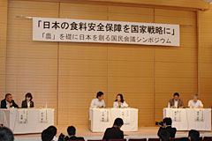 パネルディスカッションは高橋公副会長(ふるさと回帰支援センター常務理事)が司会。おもに食文化や食農教育の大切さに焦点が当たった。