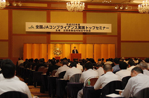 セミナー開催にあたり茂木守全中会長はJA全国大会での決議や2012年の国際協同組合年などを話題に挙げ「求められていることは組合員や役職員が協同組合理念の理解を深め、確信をもってJAに結集すること」だとし、「その一方で少なからず不祥事が発生している。これまで以上にJAグループとしてコンプライアンス態勢の確立、強化に取り組まなければとならない」と考えを述べた。