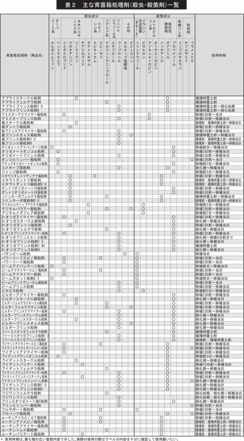 これらの害虫についても、長期に持続する有効成分の開発により、育苗箱処理で効率的に防除できる薬剤も登場している。