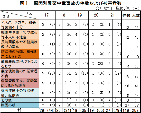 農薬使用者への中毒事故を防止するため、「農薬による事故の主な原因及びその防止のための注意事項」の遵守の徹底をお願いしてきたところです。