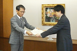 感謝状は警察庁生活安全企画課の小田部耕治課長(右)から農林中央金庫の奧和登専務に贈られた。