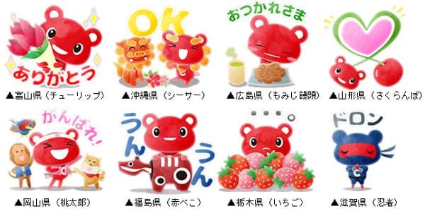 「ご当地コーすけ」動くLINEスタンプのラインナップ