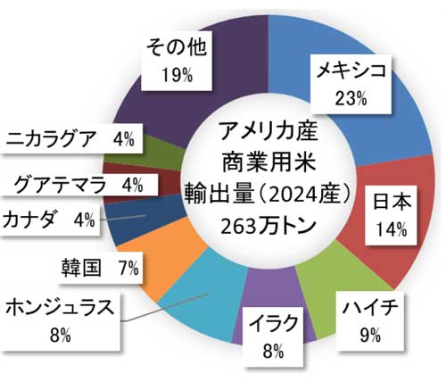 「アメリカの米の生産価格は、2024年8月~25年2月の加重平均で玄米1キロ87.2円(精米では96.9円)で、1キロ341円の関税を乗せても日本の国産米より安い。だが、アメリカで中短粒種は年302万トン生産されるが、56%は国内消費される。輸出の販路(国)も多様で、いきなり日本向けの輸出量が増加する余地は少ないのではないか」