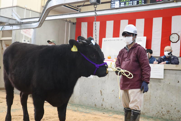 初セリの入場頭数は11日の玖珠市場が390頭(前年373頭)、12日の豊肥市場が428頭(前年430頭)となった。子牛全体の平均単価は玖珠市場が49万9930円(前年同月49万6275円)、豊肥市場は49万7411円(前年同月48万7261円)だった。飼料価格の高騰などもあり、昨年に比べて高い価格で取引された。