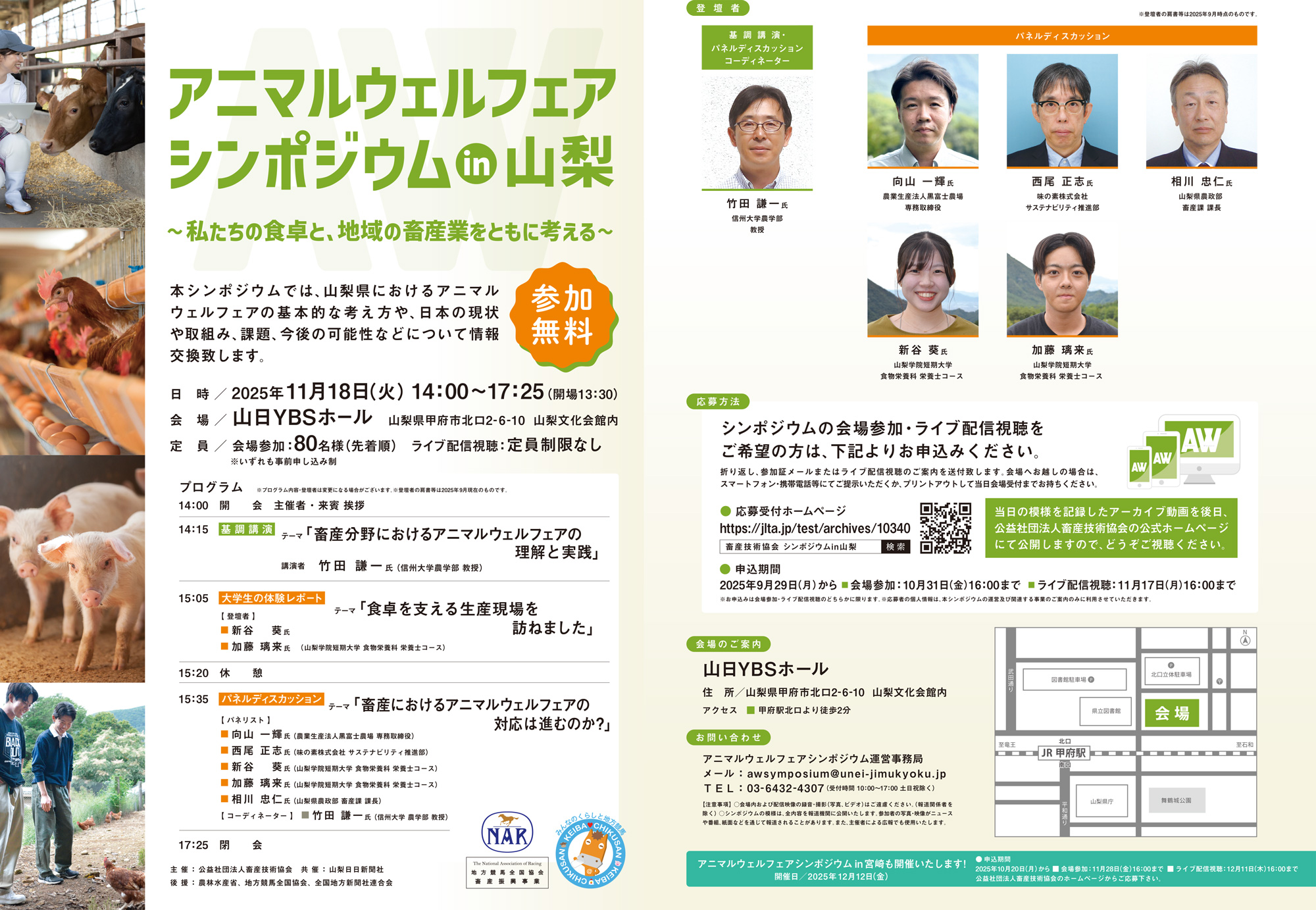 「アニマルウェルフェアシンポジウム」山梨で開催 畜産技術協会2025年10月9日
