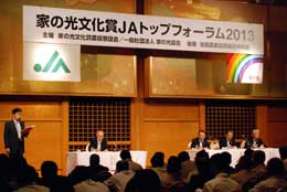 家の光協会は8月5、6日の2日間、東京都港区のホテルオークラ東京で「家の光文化賞JAトップフォーラム2013」を開いた。「JA教育文化活動の展開による次代へつなぐ協同の実践?支店協同活動で組合員・JA・地域を元気に?」のテーマで、支店を中心に、とくに教育文化活動を展開し、組合員の組織基盤を強化するとともに地域での存在感を高めている先進的なJAの取り組みや、JAの組織基盤の基になっている農家組合の強化策などについて意見交換した。全国のJAを中心に全国組織の常勤役員や幹部職員など約420人が参加した。