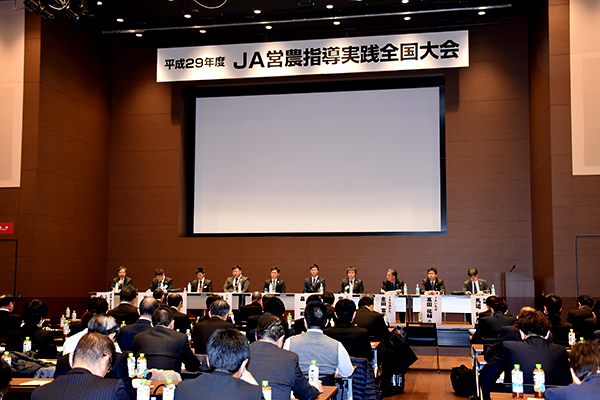 JA全中が2月22日から東京都内で開催した29年度JA営農指導実践全国大会は2日めの23日、8人の事例発表者によるパネルディスカッションを行い、「創造的自己改革の実現に向けた営農指導強化のための申し合わせ」を採択した。