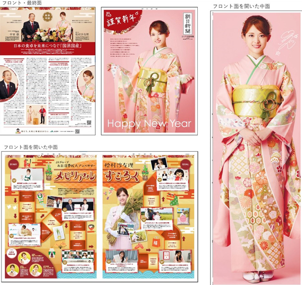 広告特集紙面では、振袖姿の松村さんのほぼ等身大ポスターや、「お米ソムリエ&白米ソムリエ資格」取得に向けた挑戦の軌跡、特別新春すごろく、JAグループが推奨する「国消国産」に関するJA全中の中家徹代表理事会長との対談など新春ならではの特別な内容が盛り込まれた。