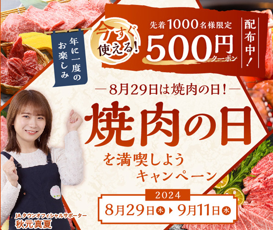 8月29日は焼肉の日「焼肉の日を満喫しようキャンペーン」開催 JAタウン2024年8月29日