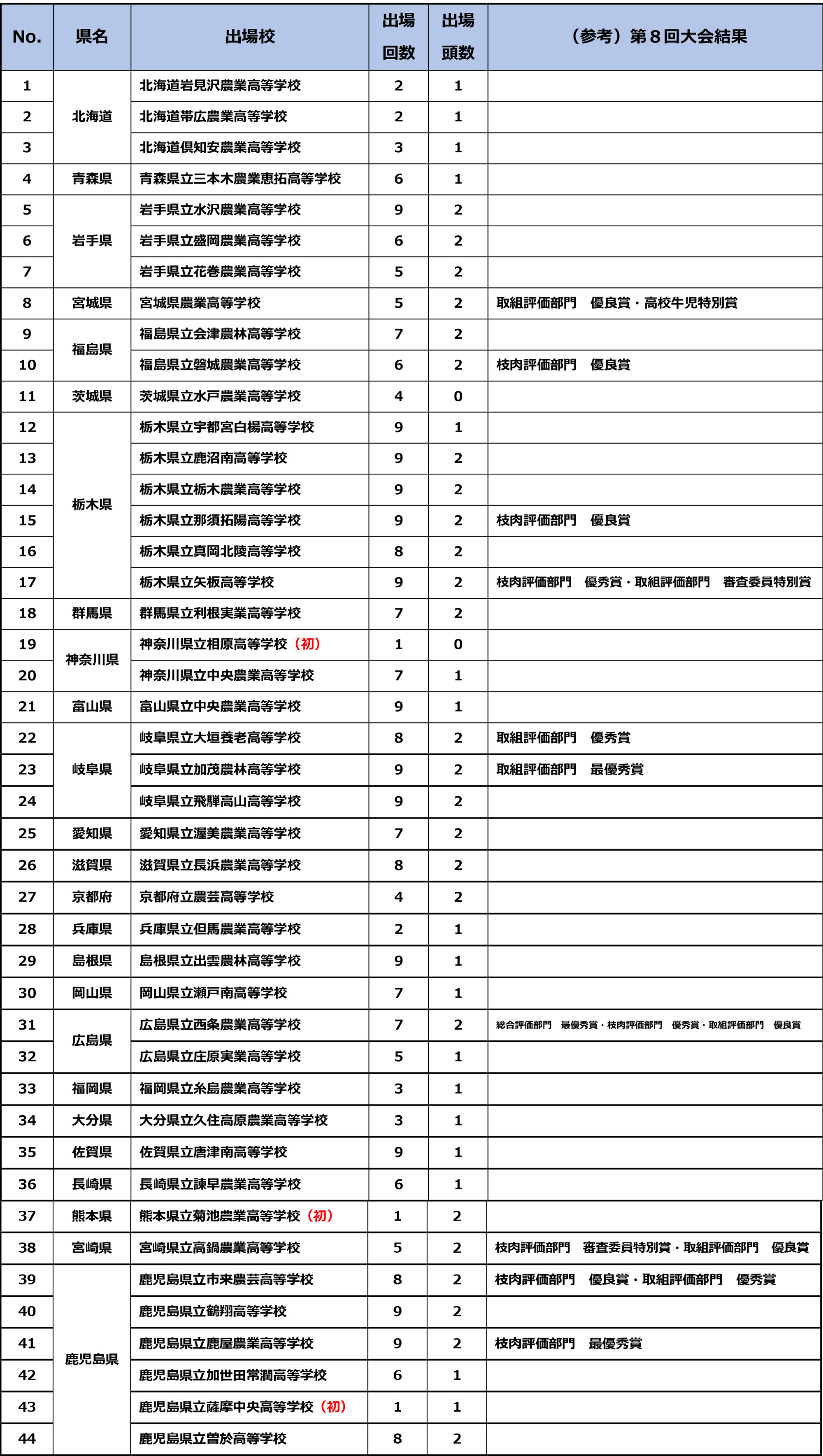 第9回和牛甲子園には、初出場の3校を含む計44校が出場し、過去最多の67頭の和牛が出品される。