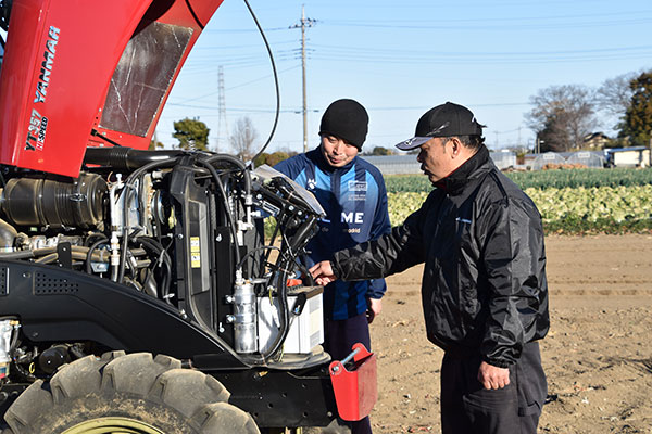 角谷さんが、本格的に父親の手伝いを始めたのは5、6年前から。父親の文男さん(70)は、寒い日のトラクター作業を避けるようになった。遮るものがなにもない関東平野の冬の空っ風は、若い角谷さんでもこたえる。エアコン付きキャビンのトラクターは望んでいたものだ。「思った通りの快適さで、冬でも父が乗るようになった」と角谷さん。