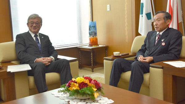 東西の地域を隔て、協同組合に一身を投じてきたご両人の「阿吽(あうん)の呼吸」が部屋に満ち、差し込む外光と相まって新春にふさわしい会談になった。筆者には後ろ髪がないが、さらに話を聞いていたいような明るい気分で退出した。農協の営農指導員として積み上げてきた現場の豊富な体験が魅力的な語らいを裏打ちしている。いただいた元気で新年も頑張ろう!と思った。その元気が愛読者の皆さんにも伝わればうれしい。超多忙な折から時間を割いてくださったご両人に心から感謝したい。(大金)