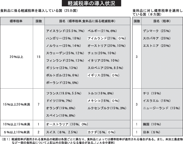 一方、欧州諸国では消費税など付加価値税を入れる際、農業への配慮と消費者負担を軽減するため、食料品などに対しては軽減税率が導入されている。日本も消費増税を実施するなら、まさに国として食料・農業をどう位置づけるか、その姿勢が問われるといえる。