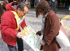 参加者は、安倍首相がTPP参加表明をするのではないかと危機感を持ち「居ても立ってもいられない気持ちで全国から集まった」と道行く人にチラシを配りながら訴えた。