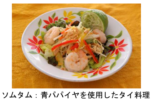 東南アジアや奄美・沖縄地方などでは青パパイヤは古くから「健康野菜」として扱われ、日常的に調理されている。特長はシャキシャキとした食感とほのかな甘みだ。