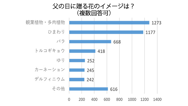 農林水産省は7月17日、同省が協力し日本花き振興協議会が実施した「父の日の花贈り」に関するアンケート調査の結果を発表した。調査は「父の日」のプロモーションの一環として6月10日から30日の期間で行われ、全体で約3500人から回答があった。