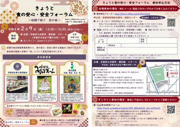 「きょうと食の安心・安全フォーラム~信頼で紡ぐ京の食~」開催 京都府2024年1月15日
