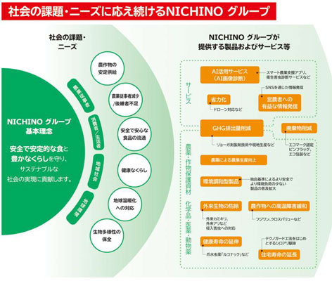 日本農薬は3月28日、NICHINOグループが社会のニーズや課題に対応して開発した技術や製品、サービスをまとめ「社会のニーズに対応したソリューション」としてホームページで公開した。