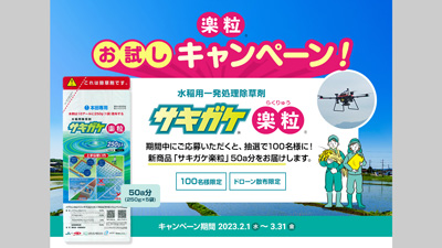 新たな水稲用除草剤「サキガケ楽粒」をドローンで散布 省力化を実感 北興化学工業2023年5月30日 -