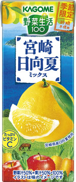 カゴメは2月13日、"地産全消"で地域の美味しさを届ける季節限定シリーズから「野菜生活100 宮崎日向夏ミックス」を発売。4月中旬までの期間限定で発売する。