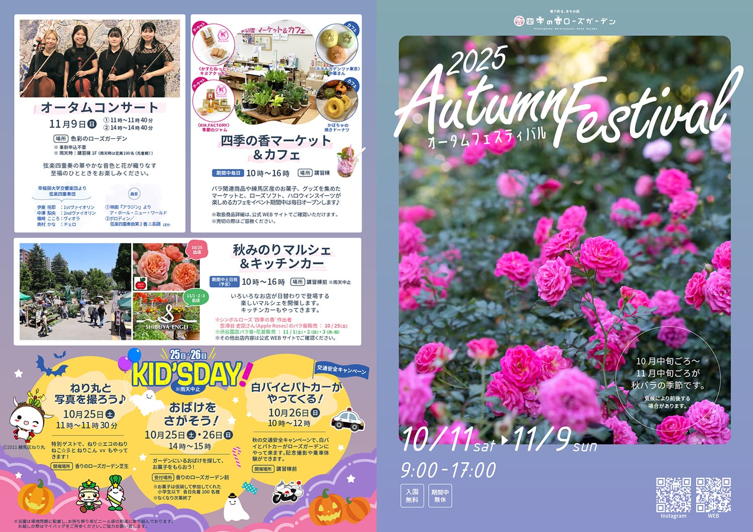 第一園芸みどりのまち共同事業体が指定管理者として参画する「練馬区立 四季の香(かおり)ローズガーデン」は10月11日~11月9日、秋のバラを堪能する「2024オータムフェスティバル」を開催。期間中は、弦楽四重奏のコンサートやハロウィンスイーツ販売などイベントも開かれる。
