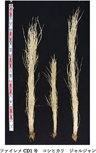 「ファィレメCD1号」は、カドミウムをよく吸収する外国のインディカ種「ジャルジャン」にガンマ線を照射した突然変異体。もみが落ちにくく、倒れにくい性質を持ち、国内で栽培しやすい。また日本の食用品種より背が高く、長粒の赤米であることから、混米の恐れがない。
