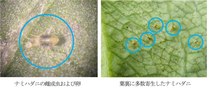 〇ハダニ類に登録のある薬剤の多くは浸透移行性に乏しいため、必要に応じて展着剤を加用し、葉裏に薬剤が十分かかるよう、丁寧な散布を心がける。