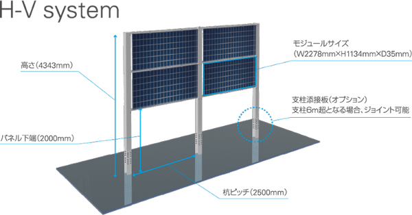 太陽光発電は全国的に導入が拡大しているが、平地の少ない日本では、設置場所の確保が大きな課題となっている。そこでタカミヤは、占有面積の極めて少ない場所でも導入可能な「H-V system」を開発。垂直設置架台と両面受光型パネルを組み合わせることで、農地・多雪地域・工場フェンス沿い・駐車場の間仕切りなど、これまで発電設備の設置が難しかった場所でも高効率な発電を実現する。