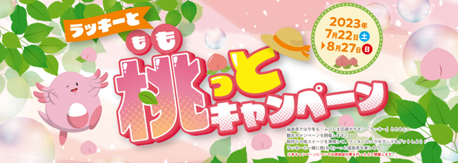福島県は、ふくしま応援ポケモン「ラッキー」とコラボした「桃」を楽しむ観光キャンペーンを8月27日まで実施中。観光果樹園での桃狩りや、桃スイーツを提供する飲食店でのプレゼント企画、フォトコンテストなどを実施している。
