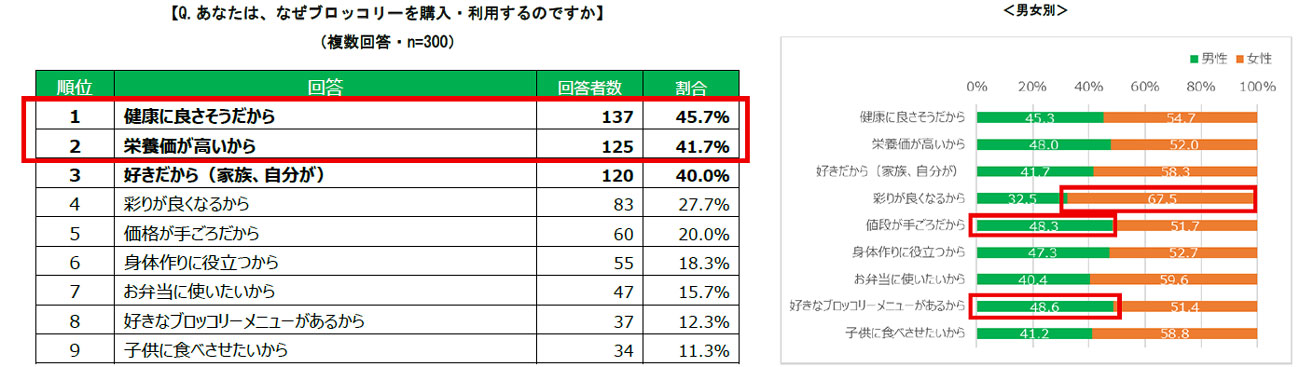 【Q.あなたは、なぜブロッコリーを購入・利用するのですか】(複数回答・n=300)